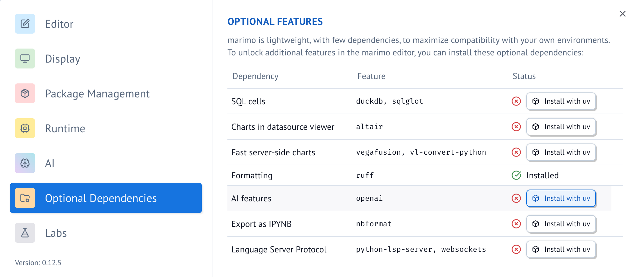 1. Add the following to your marimo.toml (or configure in the UI settings in the editor):